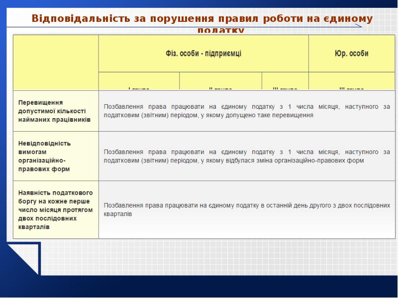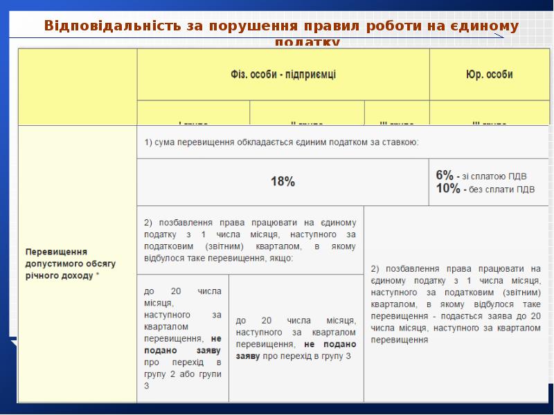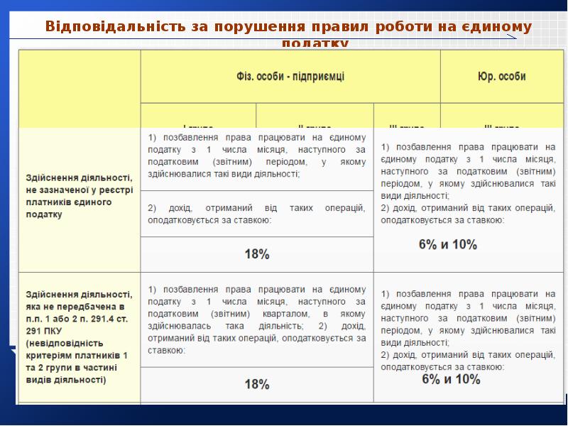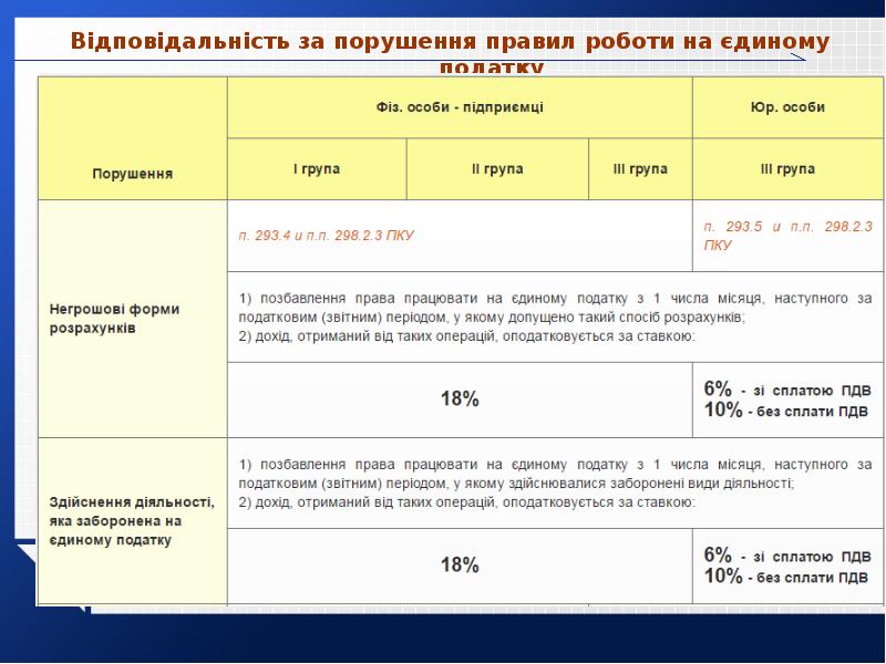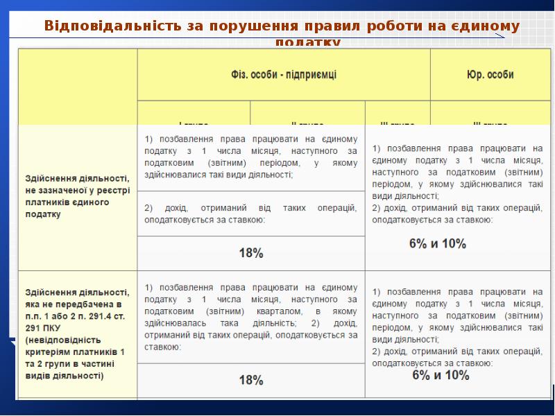 - 41. Відповідальність за порушення правил роботи на єдиному податку