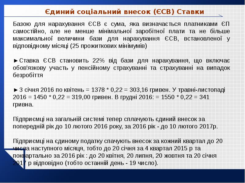 - 45. Єдиний соціальний внесок (ЄСВ) Ставки