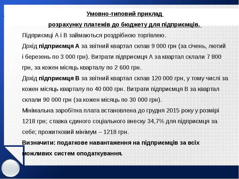 Оподаткування суб’єктів малого підприємництва презентация