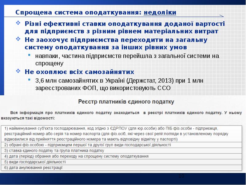 - 10. Спрощена система оподаткування: недоліки Спрощена система оподаткування: недоліки Різні ефективні ставки