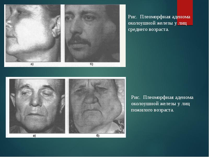 - 7. Плеоморфная аденома растет безболезненно, медленно (в течение нескольких лет) и может