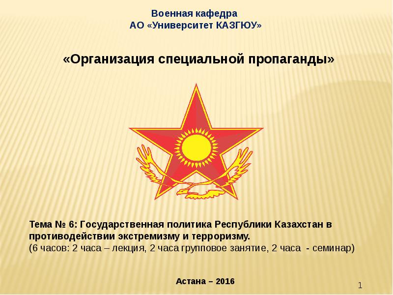 Организация специальной пропаганды» Астана – 2016 Военная кафедра АО презентация