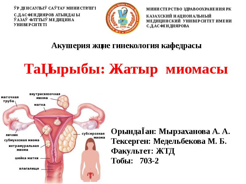 - 2. Жатыр миомасы Әйел жыныс мүшелерінің қатерсіз ісіктері ішінен ең