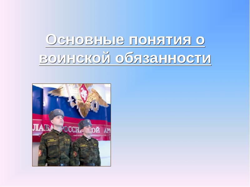 Скачать презентацию на тему Основные понятия о воинской обязанности можно ниже: