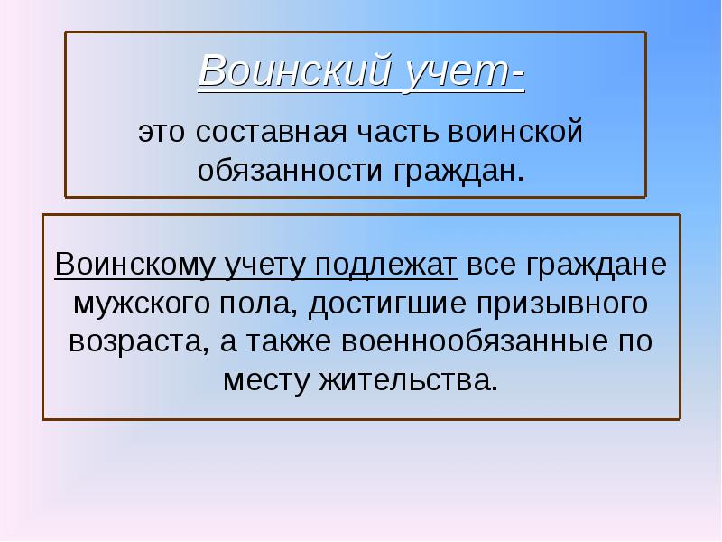 - 6. Воинский учет- это составная часть воинской обязанности граждан. Воинскому учету подлежат