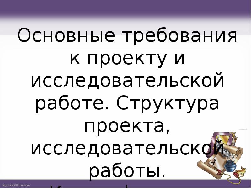 Основные требования к проекту и исследовательской работе. Структура проекта, презентация