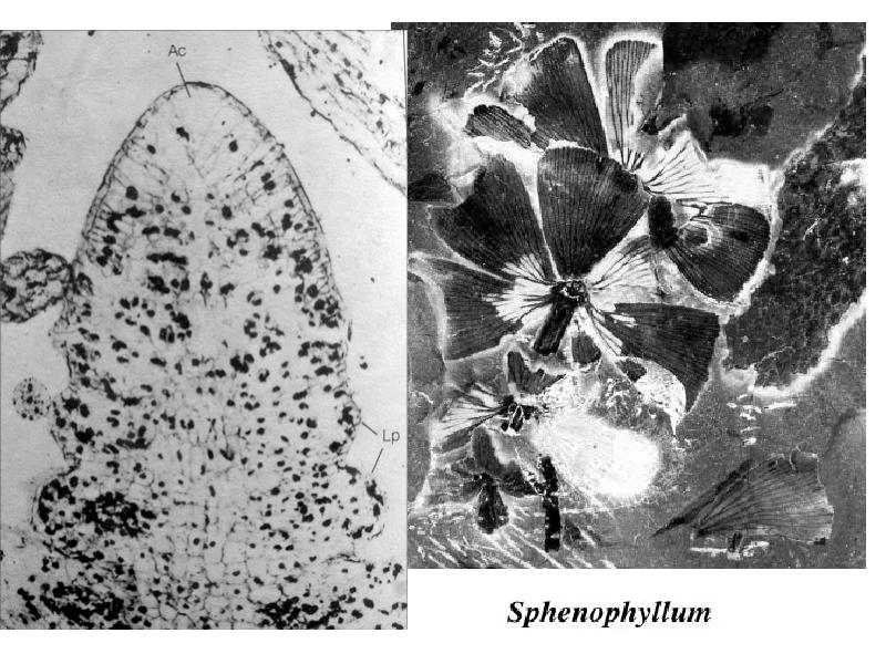 - 21. Sphenophyllum триархная актиностела (первичная ксилема), вторичные ксилема и флоэма, перидерма Sphenophyllum