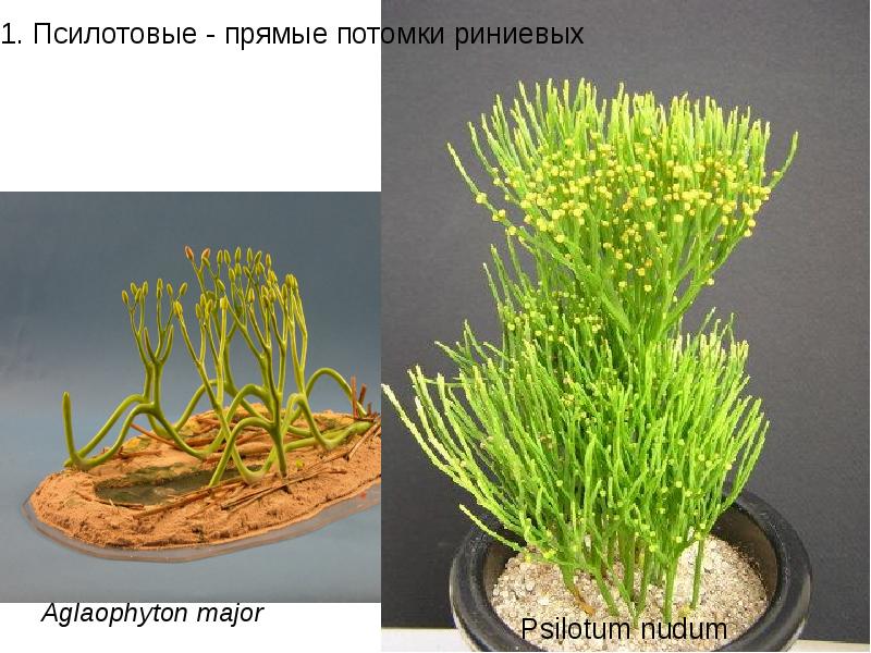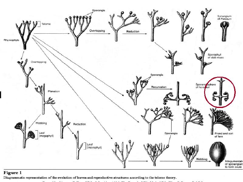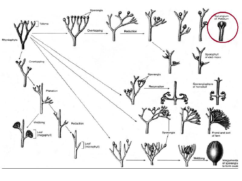 - 46. Отд. Psilotophyta 3 версии происхождения листьев : (1) Чешуевидные выросты на