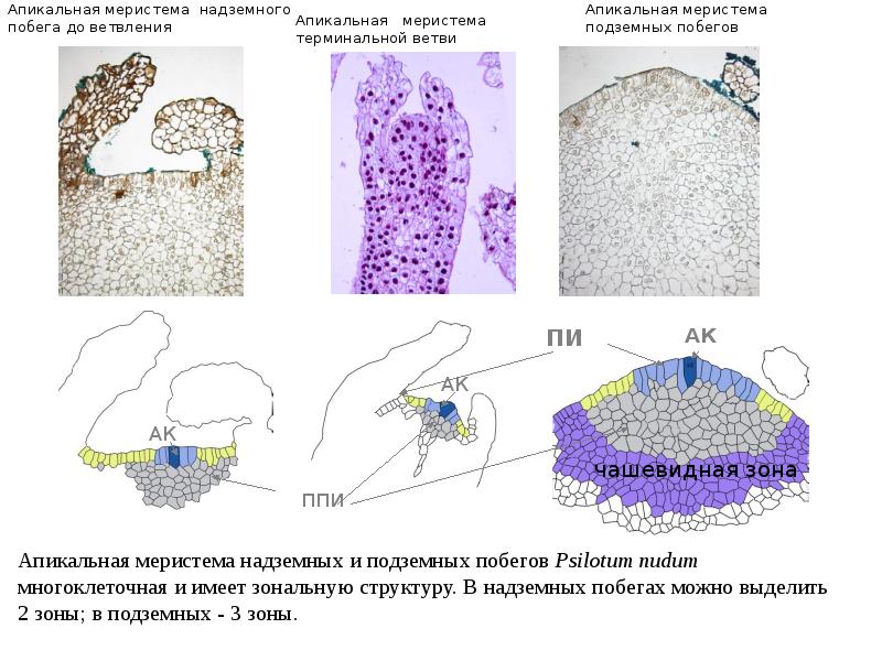 - 39. В апикальной меристеме есть единственная апикальная клетка. В апикальной меристеме можно
