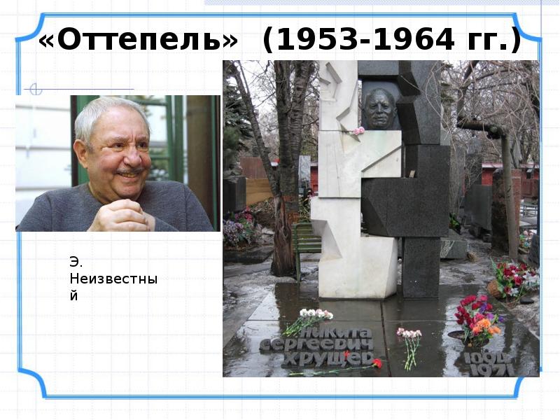 - 3. Хрущевская «оттепель» конца 50-х-начала 60-х годов - это не весна, в