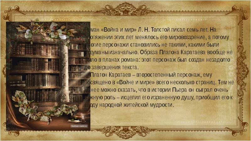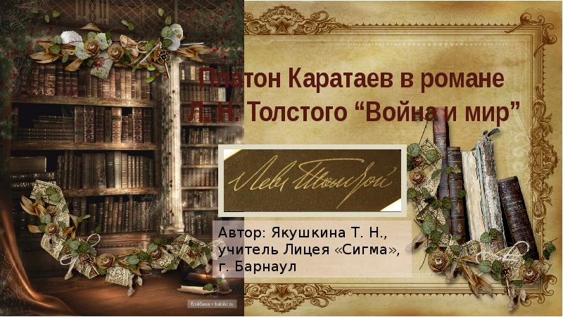 Платон Каратаев в романе Л. Н. Толстого “Война и мир” Автор: Якушкина Т. Н., у презентация