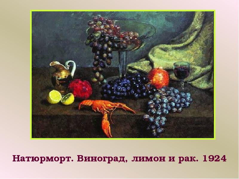 Родился в станицеЦветы в вазе (с подносом).1912гКорзина и маки.Натюрморт с крабами. 1925г.Диктант. Записать под диктовку текста с объяснением знаков препинания и знакомыхНатюрморт