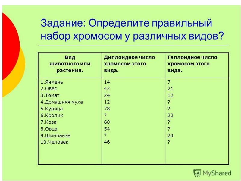 - 6. Сколько хромосом содержится в каждой гамете и зиготе? Соматическая клетка