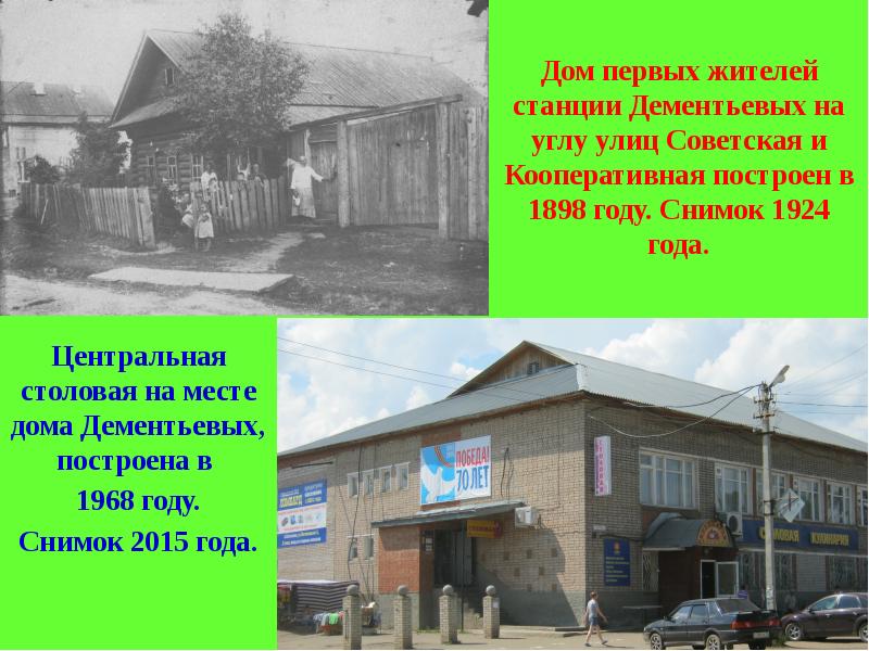 - 15. Дом первых жителей станции Дементьевых на углу улиц Советская и Кооперативная