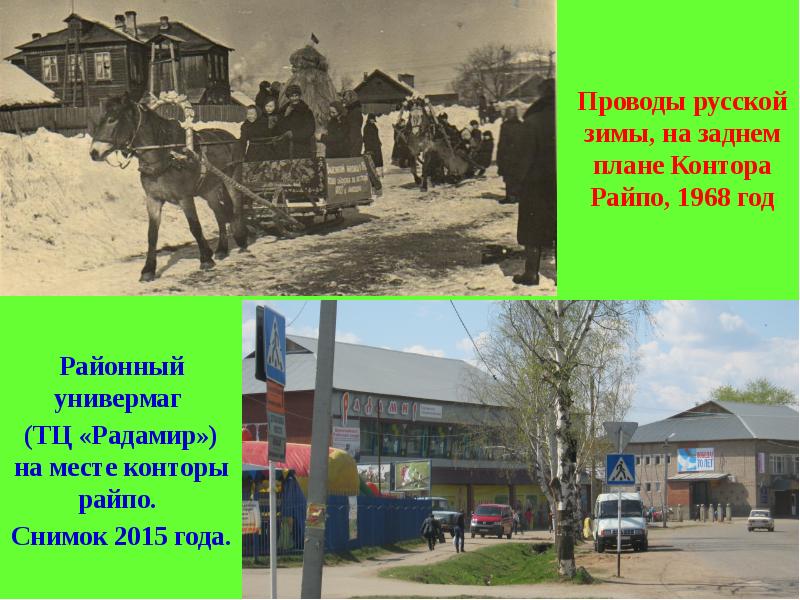 - 17. Проводы русской зимы, на заднем плане Контора Райпо, 1968 год Районный