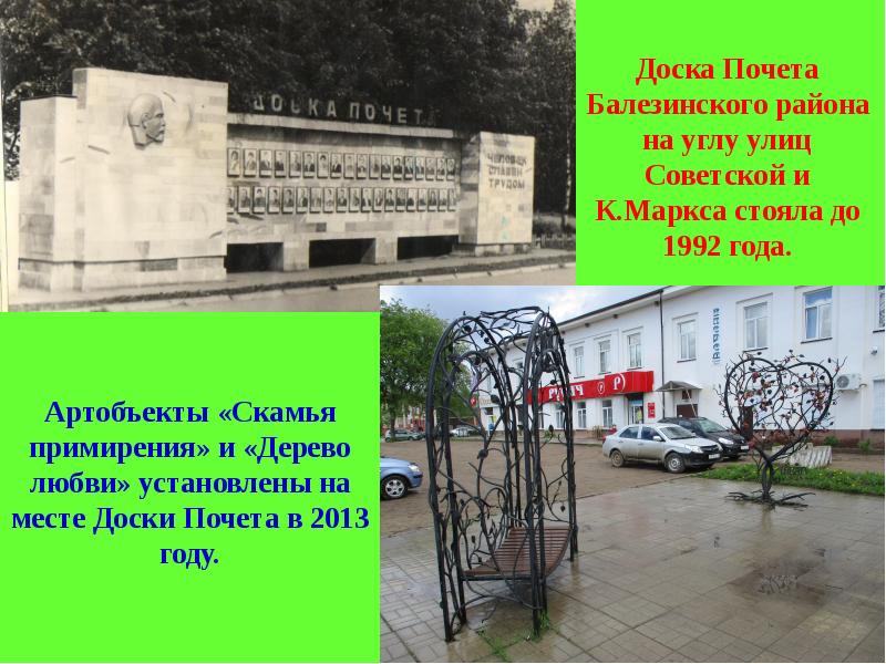 - 20. Доска Почета Балезинского района на углу улиц Советской и К.Маркса стояла