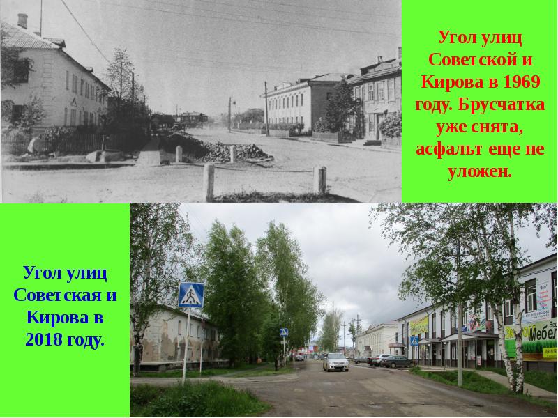- 22. Угол улиц Советской и Кирова в 1969 году. Брусчатка уже снята,