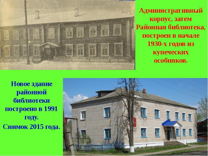 - 24. Административный корпус, затем Районная библиотека, построен в начале 1930-х годов из