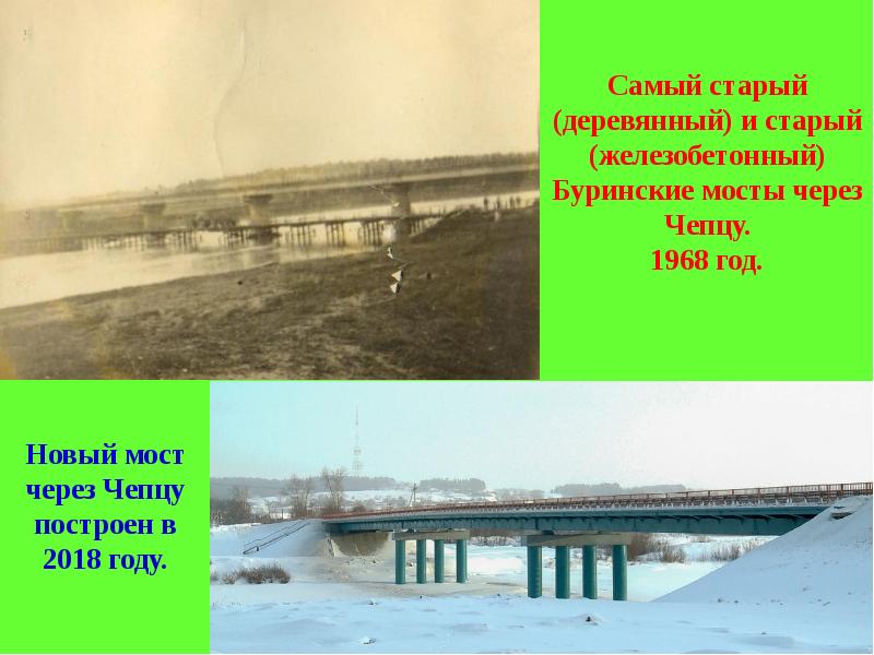 - 43. Самый старый (деревянный) и старый (железобетонный) Буринские мосты через Чепцу. 1968