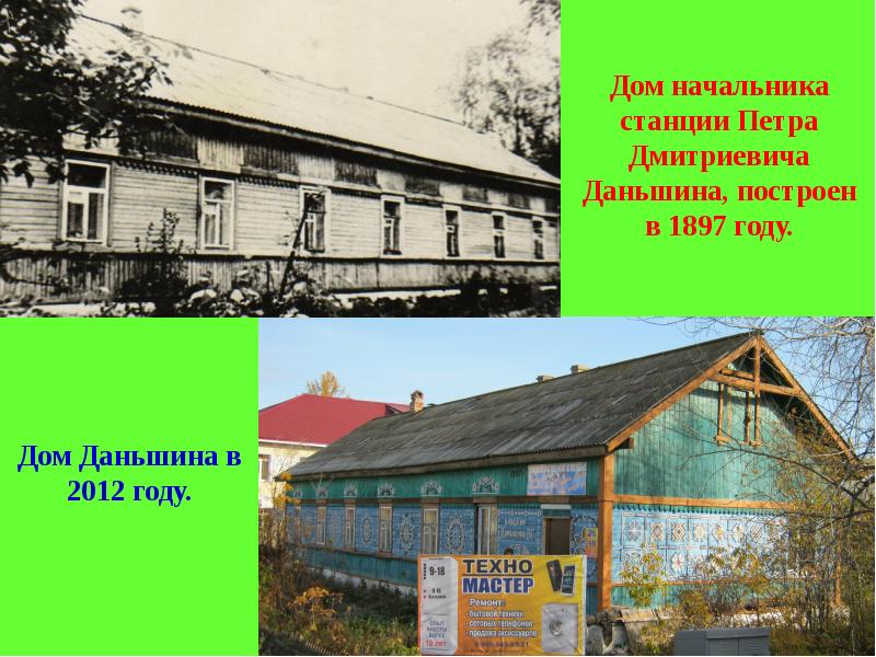 - 7. Дом начальника станции Петра Дмитриевича Даньшина, построен в 1897 году. Дом