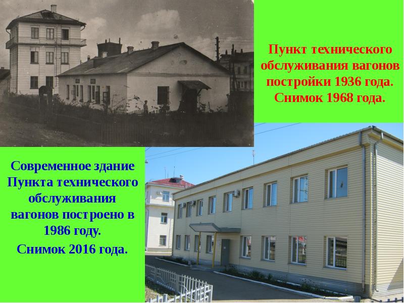 - 8. Пункт технического обслуживания вагонов постройки 1936 года. Снимок 1968 года. Современное