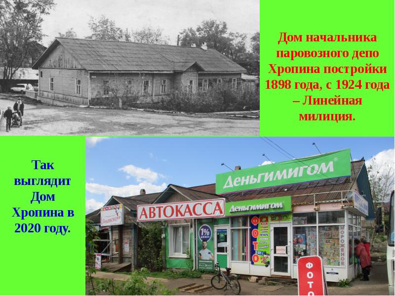 - 10. Дом начальника паровозного депо Хропина постройки 1898 года, с 1924 года