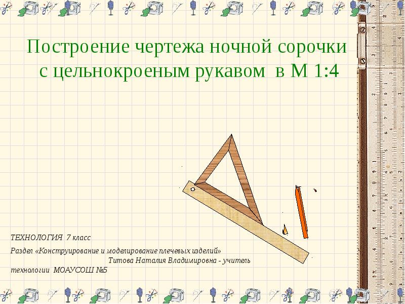 Построение чертежа ночной сорочки с цельнокроеным рукавом в М 1:4 ТЕХНОЛОГИЯ 7 презентация