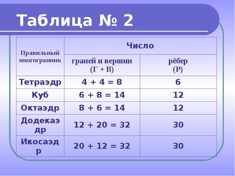 - 14. Сумма числа граней и вершин любого многогранника Сумма числа граней