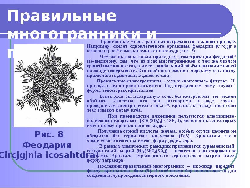 - 16. Правильные многогранники и природа Правильные многогранники встречаются в живой