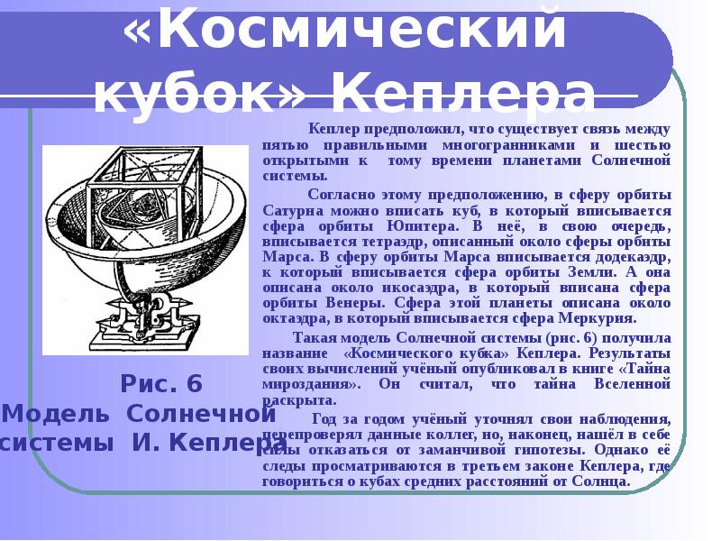 - 10. Кеплер предположил, что существует связь между пятью правильными многогранниками и шестью
