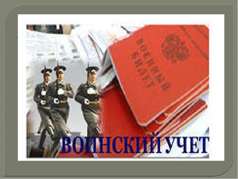 Воинский учет – это составная часть воинской обязанности граждан. Воинскому учету в Российской Федерации подлежат все граждане мужского пола, достигшие призывного возраста, а также военнообязанные по месту жительства. Воинский учет – это составная часть воинской обязанности граждан. Воинскому учету в Российской Федерации подлежат все граждане мужского пола, достигшие призывного возраста, а также военнообязанные по месту жительства. Граждане освобожденные от воинского учета: 1.Освобожденые от исполнения воинских обязанностей в соответствии с Федеральным законом « О воинской обязанности и военной службе» 2.Проходящие военную службу или альтернативную гражданскую службу 3.Отбывающие наказание в виде лишения свободы 4.Женского пола, не имеющие военно-учетной специальности 5.Постоянно проживающие за пределам и Российской Федерации.