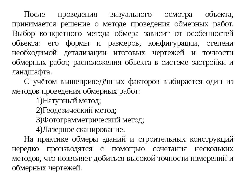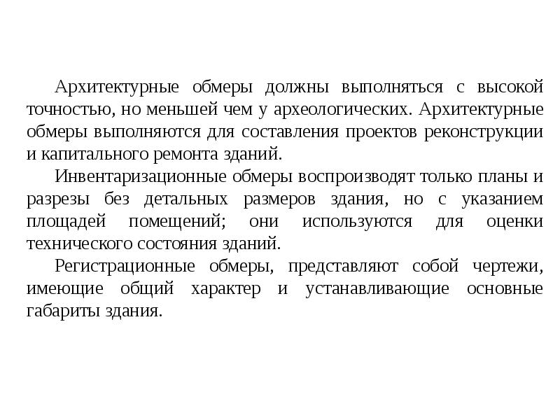 “Обмерные работы (содержание, цель, документация, можно ниже: