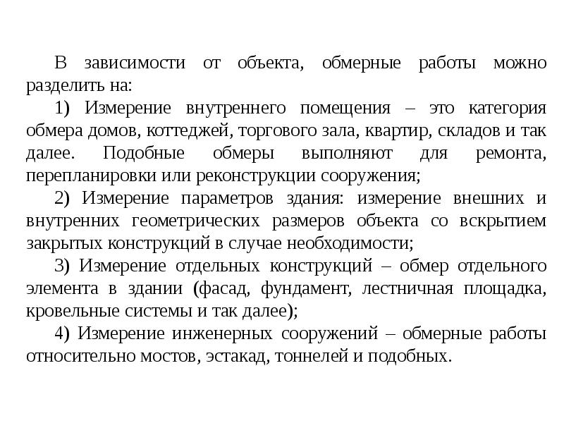 - 3. Классификация обмерных работ