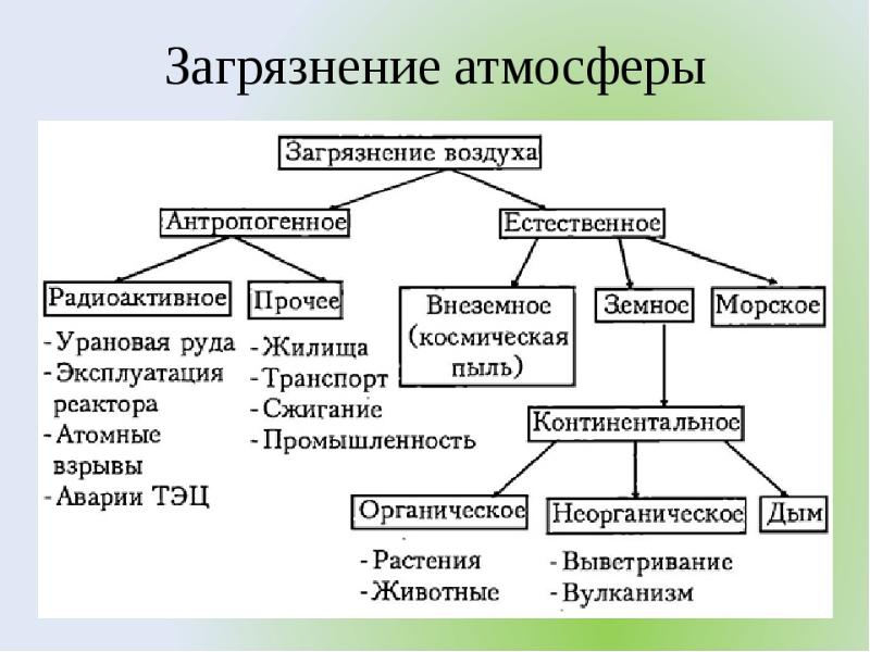 - 4. Что такое загрязнение атмосферы? Загрязнение атмосферы Земли — принесение в атмосферный воздух новых, нехарактерных