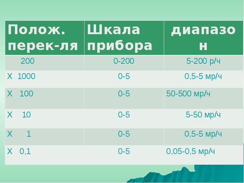 - 16. Контроль радиоактивного загрязнения (заражения) Оценивается путем измерения экспозиционной дозы в мР/ч.