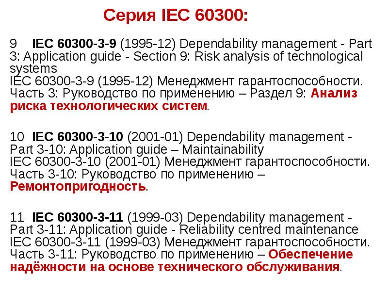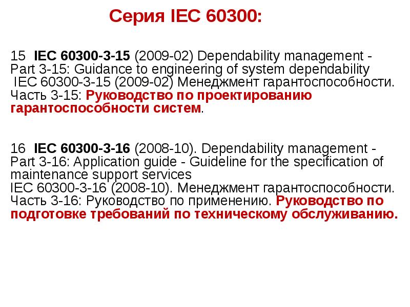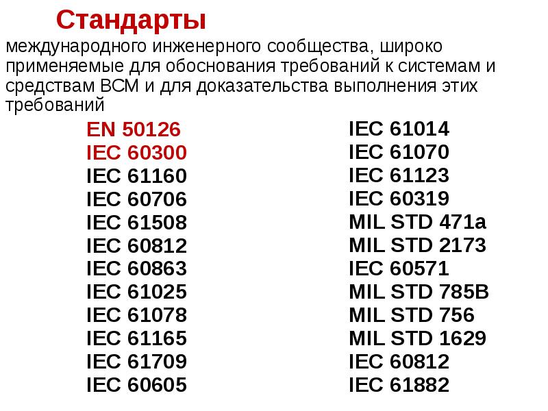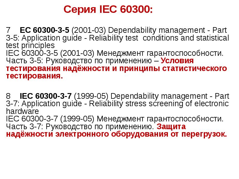 - 31. Также действуют стандарты с традиционным представлением о надёжности. Например: