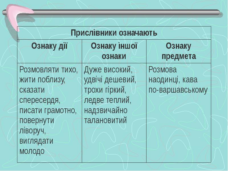 - 7. Приклади Ознаки дії – сидіти зручно, співати разом, прийти додому