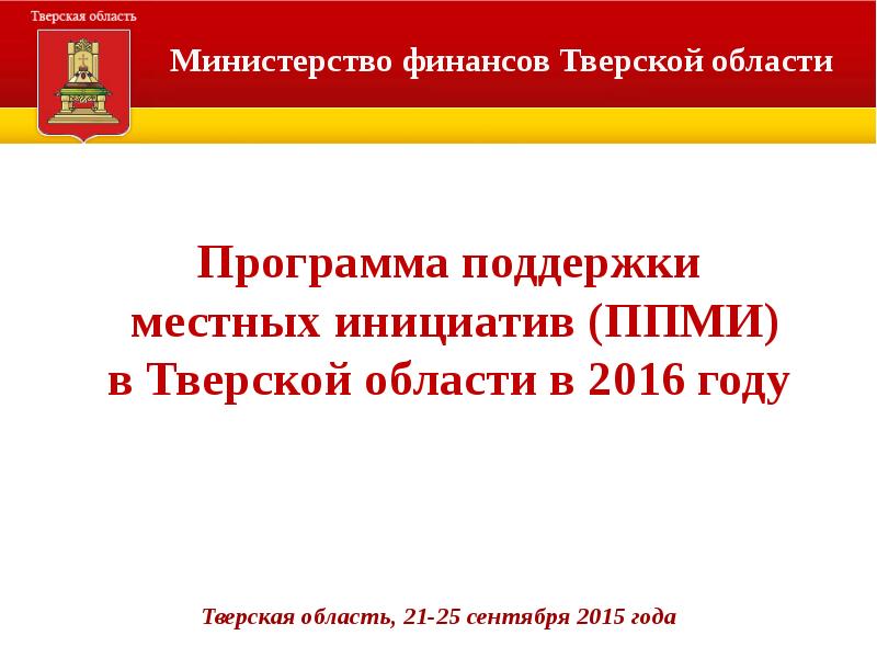 Программа поддержки местных инициатив (ППМИ) в Тверской области в 2016 году презентация