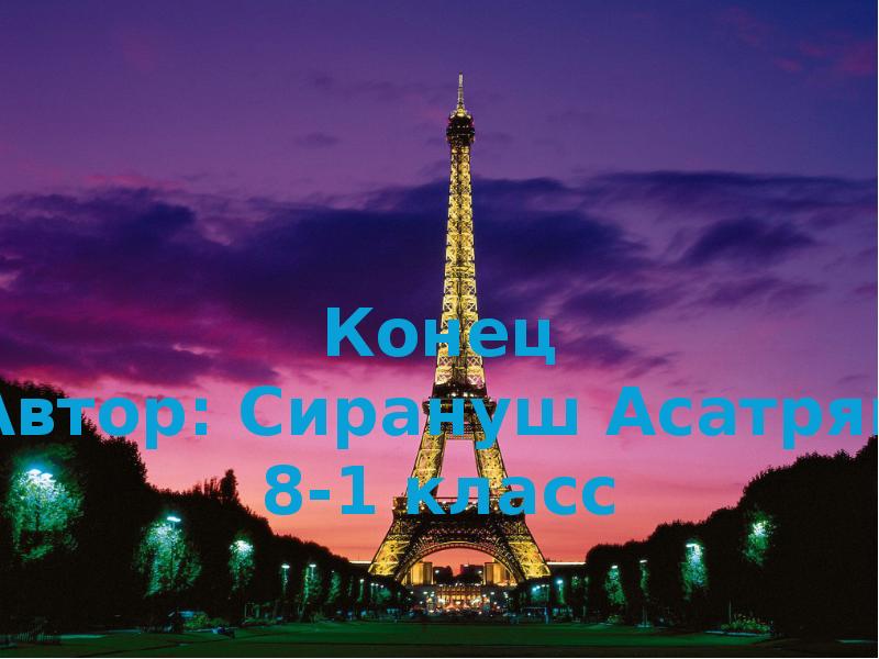 - 6. День 1. эйфелева башня Эйфелева башня-металлическая башня в центре города Парижа, самая узнаваемая его архитектурная достопримечательность.