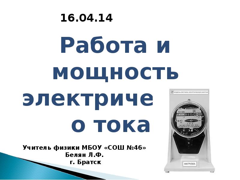 Скачать презентацию на тему Работа и мощность электрического тока можно ниже:
