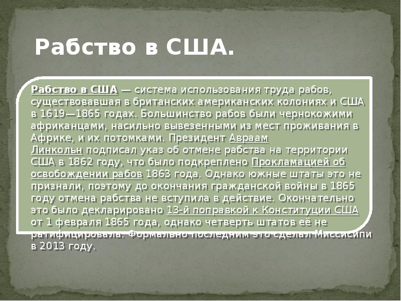Рабство в США. Выполнили: Закуров Илья, Устинова Анна, Ожерельева Дарья.