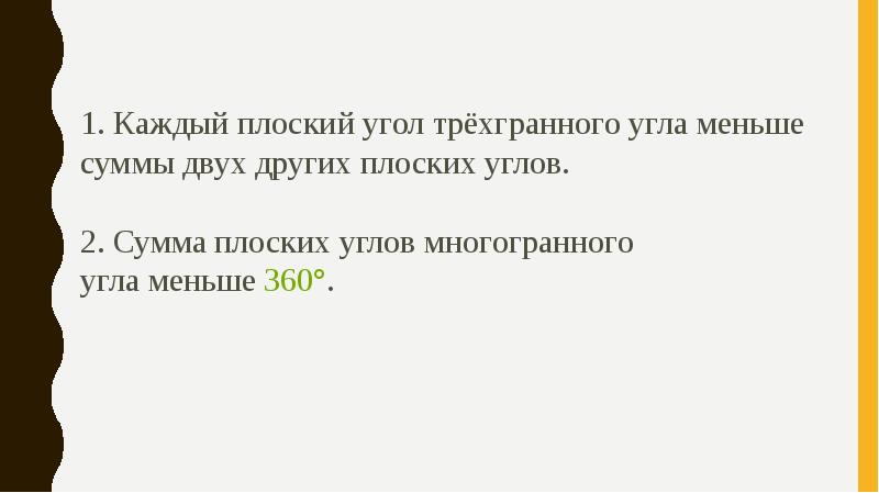 - 7. Многогранник называется выпуклым, если он расположен по одну сторону от плоскости каждой