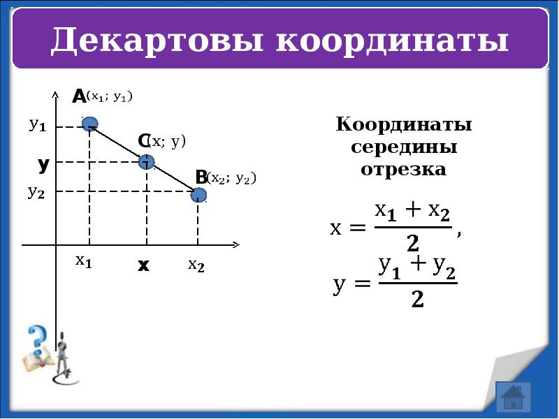 - 10. Задание № 1 Найдите координаты середины отрезка АВ, если :