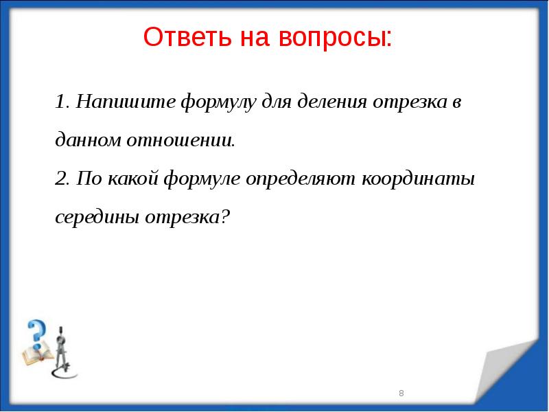 - 6. Задача о делении отрезка в данном отношении состоит в том, чтобы