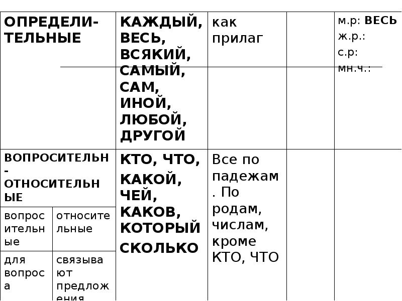 - 7. Зачёт. Местоимение 1.Какие личные местоимения изменяются по родам? 2. Перечислите определительные