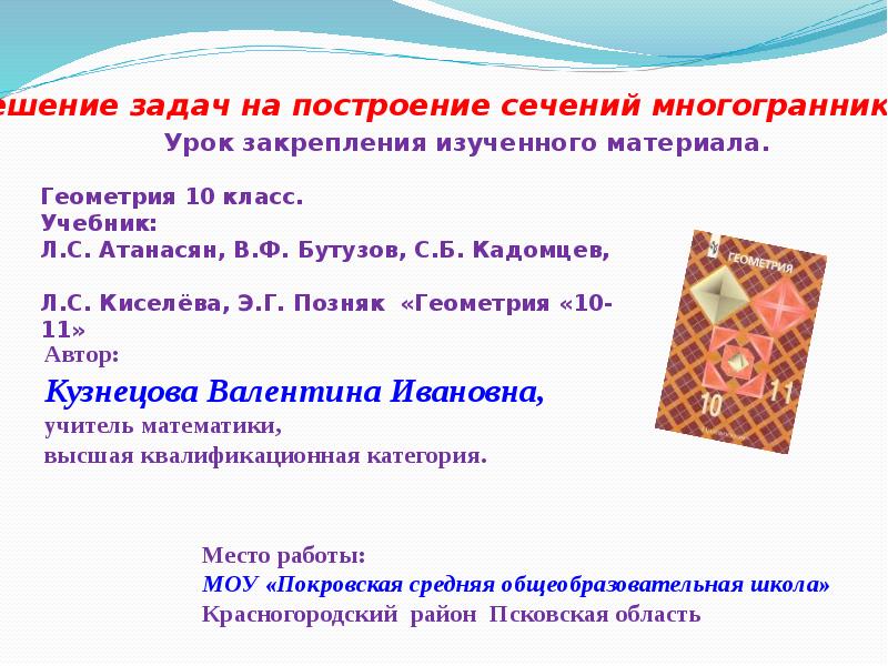 Презентация на тему Решение задач на построение сечений многогранников доступна для скачивания ниже: