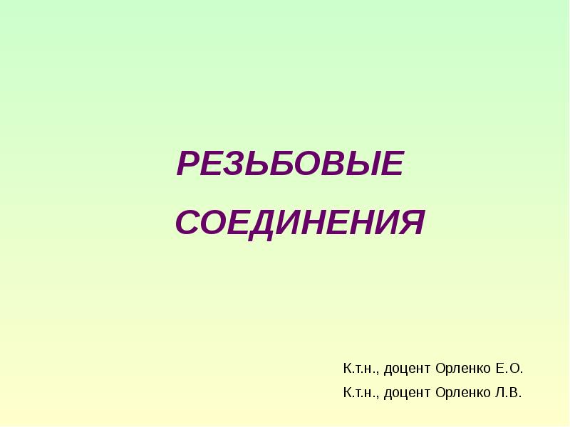 РЕЗЬБОВЫЕ СОЕДИНЕНИЯ К.т.н., доцент Орленко Е.О. К.т.н., доцент Орленко Л.В презентация