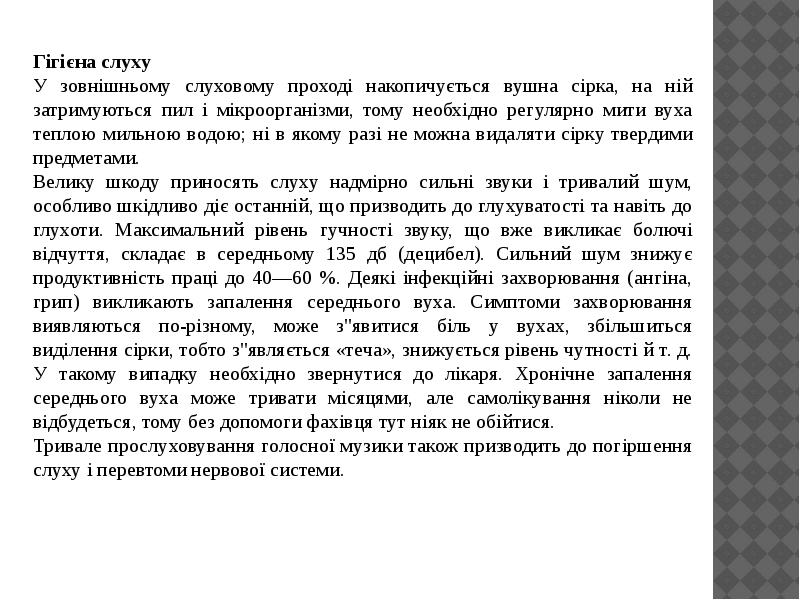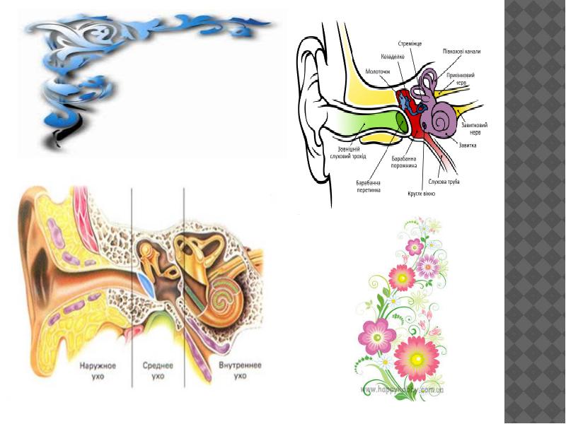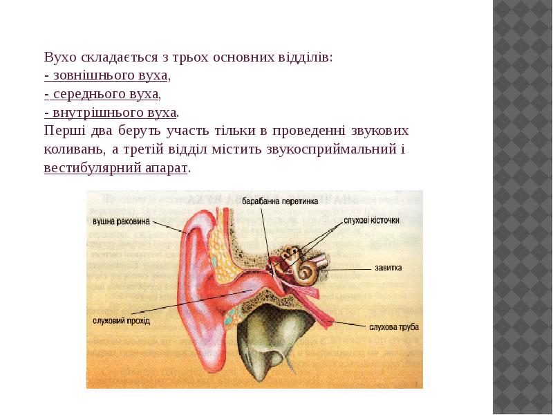 - 12. РОЗДІЛ 4. Слухова сенсорна система. Вухо як орган слуху забезпечує сприйняття