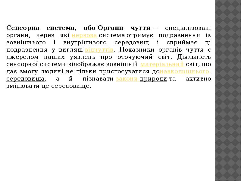 - 3. вступ Діяльність сенсорної системи відображає зовнішній матеріальний світ, що дає змогу