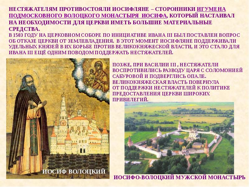 - 12. ЦЕРКОВНЫЕ СПОРЫ. НЕСТЯЖАТЕЛИ И ИОСИФЛЯНЕ